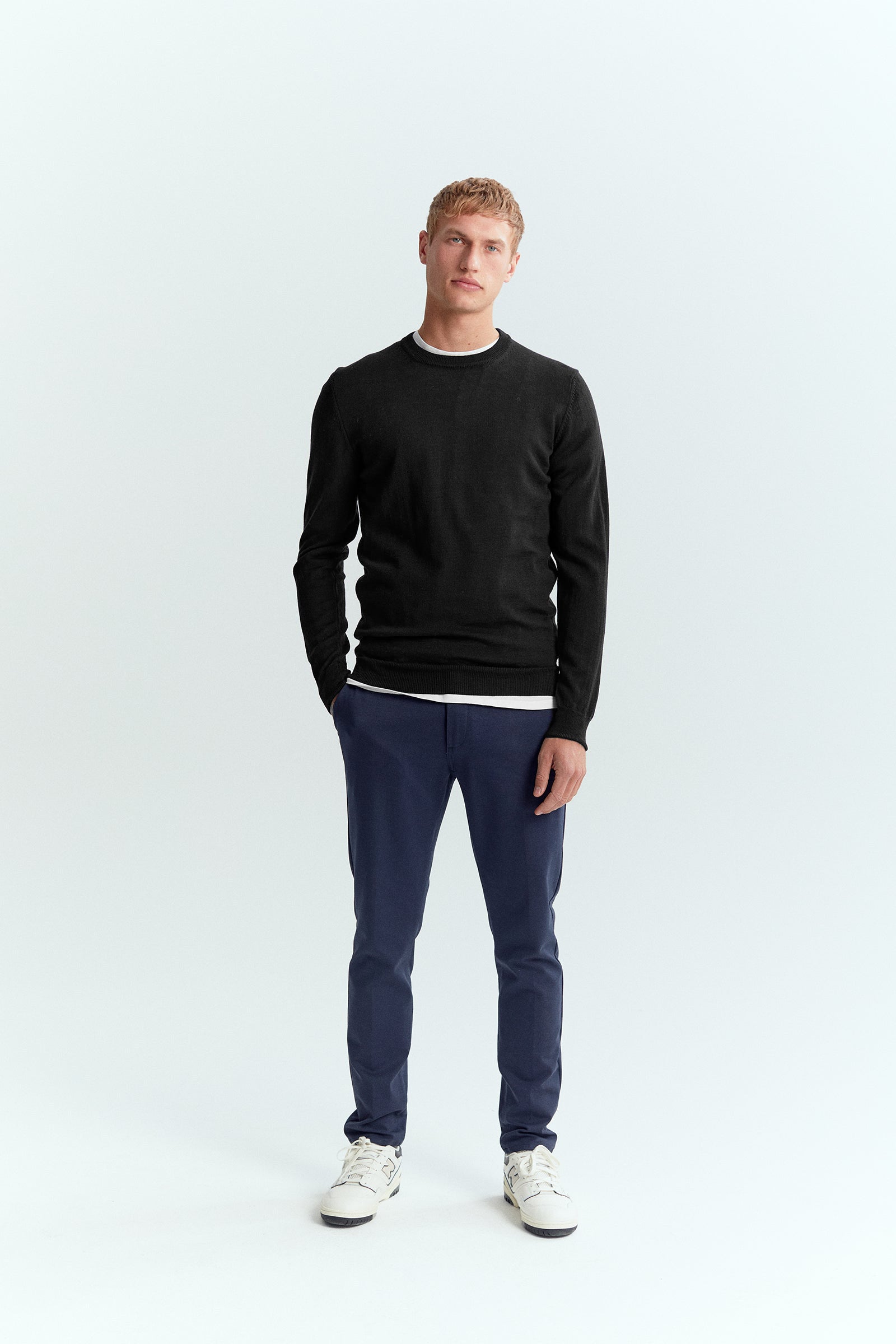 The Essential Merino Knit is made out of 100% Italian merino wool. The knit has everything you need - a comfortable fit, high quality fibres and a timeless design.