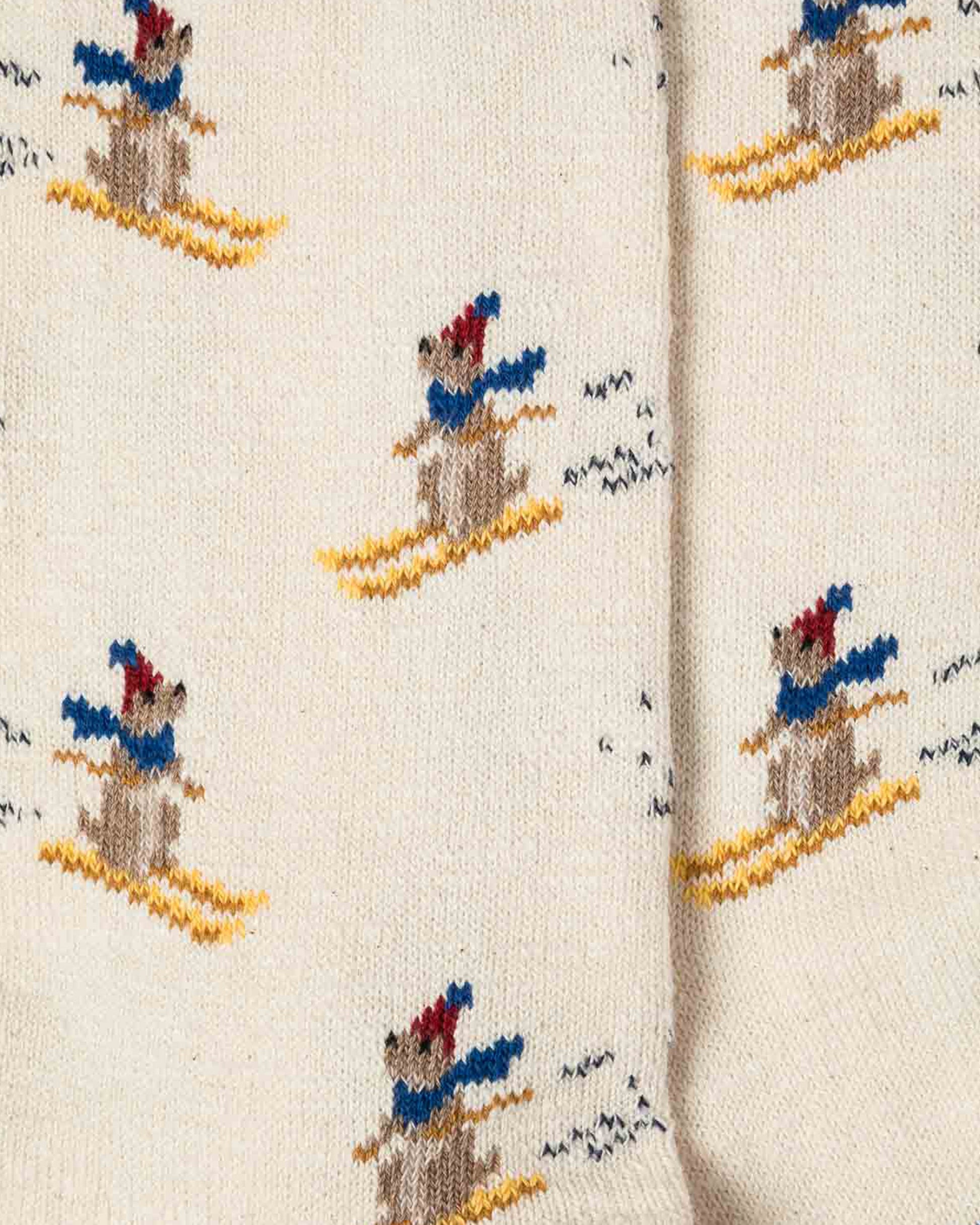 Ideal for après-ski, these mid-thick socks patterned with marmots skiing on the slopes are made in France.